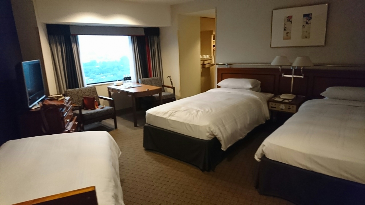 さすが老舗の高級ホテルで、サービスや接客態度はとてもよいです。出かける際に雨が降り出したので傘を借りましたが、傘も立派でした。ガーデンタワーのトリプルルームでしたが、料金は平日だったせいか、朝食付きで1人10300円と思ったより安かったです。部屋は広めでしたが、やはり古さは隠せず、ウォシュレットは古い型でしたし、時代のニーズに応じていないというか、スマホの充電やパソコン使用をするには不便でした。