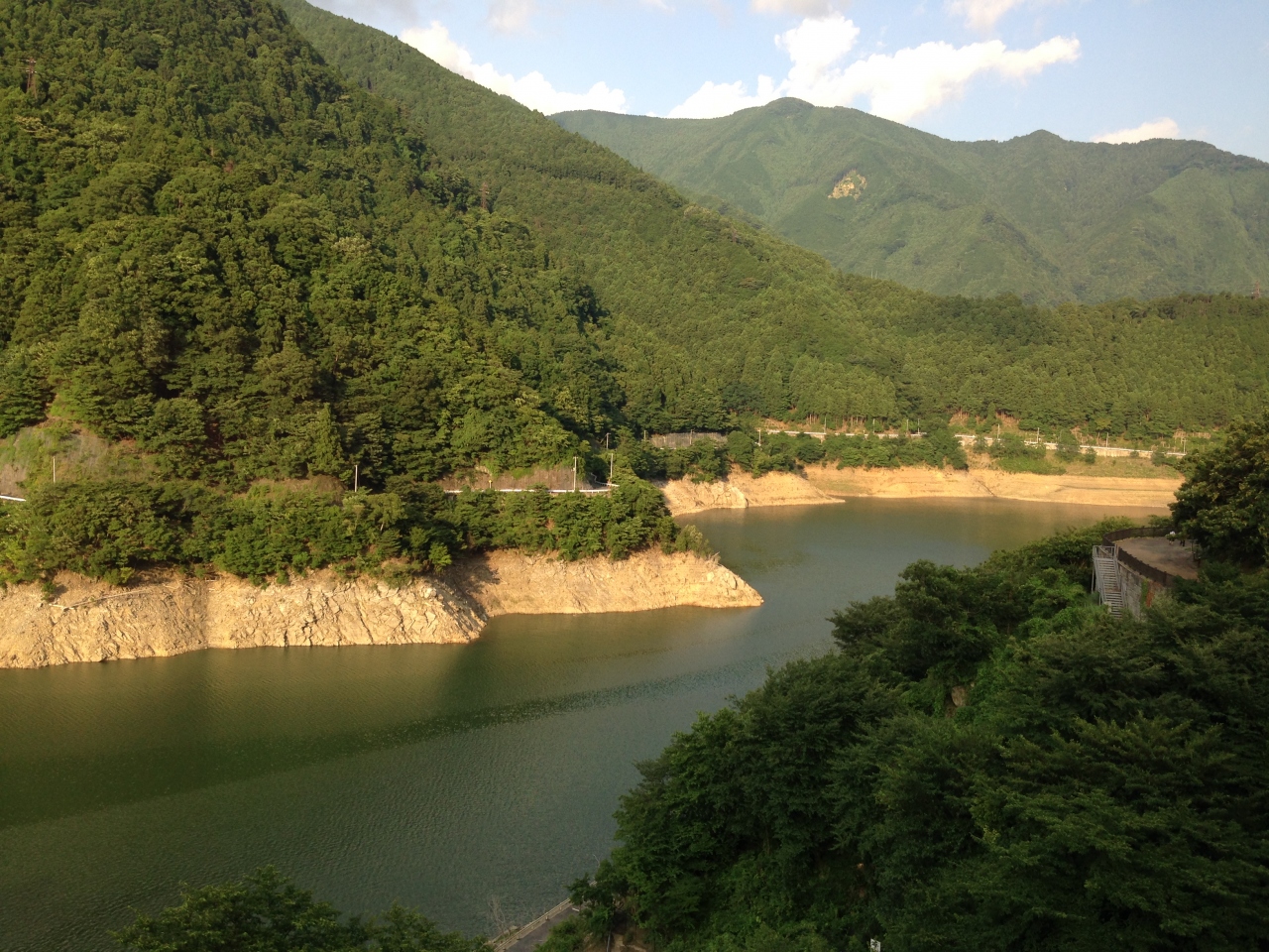 周りは深い森林で、目の前は大滝ダムです。建物の中は改築されていてとても快適です。
