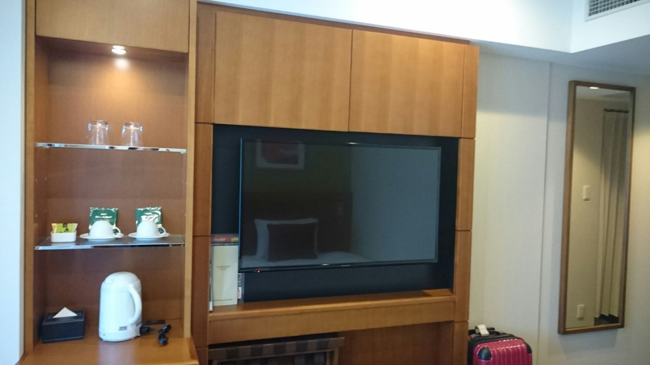 部屋の割にテレビが大きい、寝転びながら見る事ができます。
