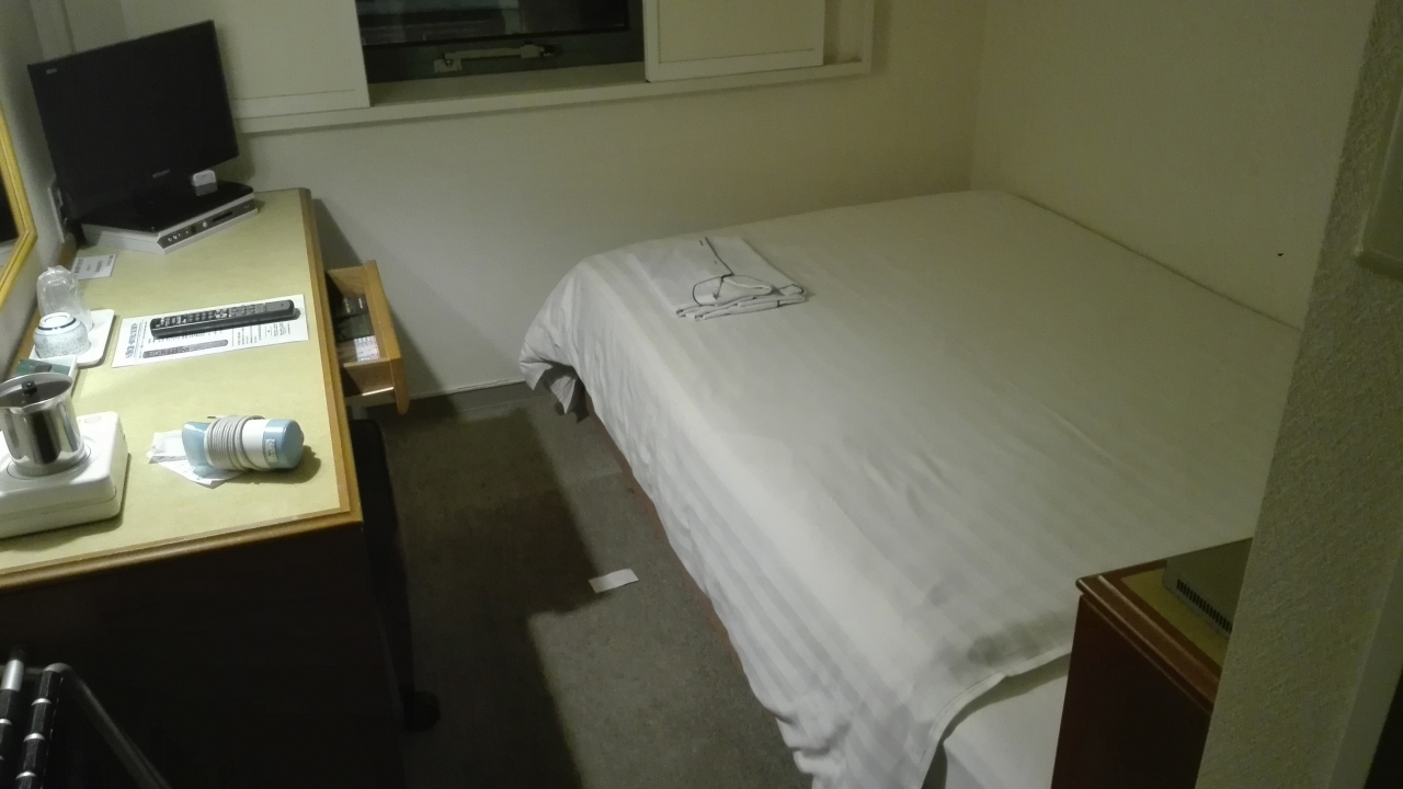 部屋は狭いように見えてそれほど狭さを感じさせない。ベッドもそれなりに広かった。