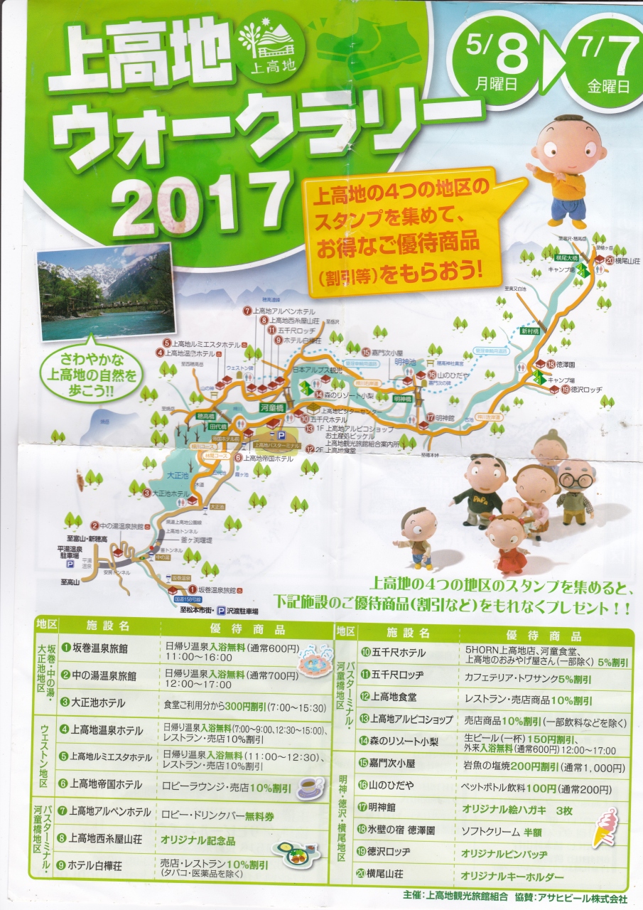 2017年の上高地ウォークラリーは5月8日から7月7日で上高地の各地で