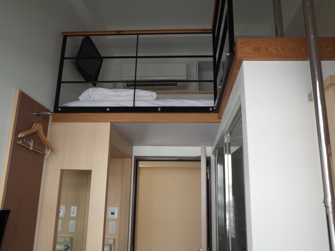 部屋は高床式で1F部は実質中型のスーツケースを広げるくらいのスペースしかない。