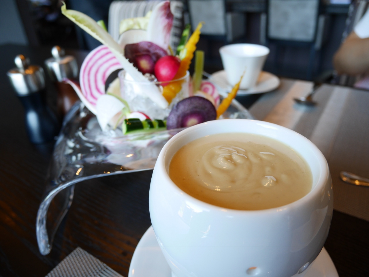 バーニャカウダも、色彩の美しい野菜に、アンチョビベースの美味しいソースが付いていて、生野菜を楽しく頂きました。