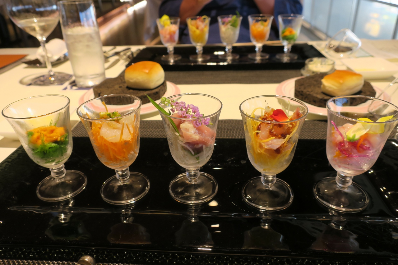 食事は和風フレンチレストランでコース料理を頂いたが、どれも美しく美味しかった。