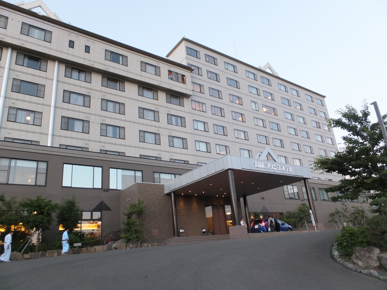 浴衣を着て食堂や外出も可能で堅ぐるしくなく寛げていいと思う。到着後即風呂にここの知床半島のサンセットが素晴らしいと聞いていたので、7時ごろフロントに行くとぎりぎりで見られないかもと早くいくようにアドバイスとスリッパだったので、履物の処に案内されて出かけ何とか沈む寸前を写真が撮れた。