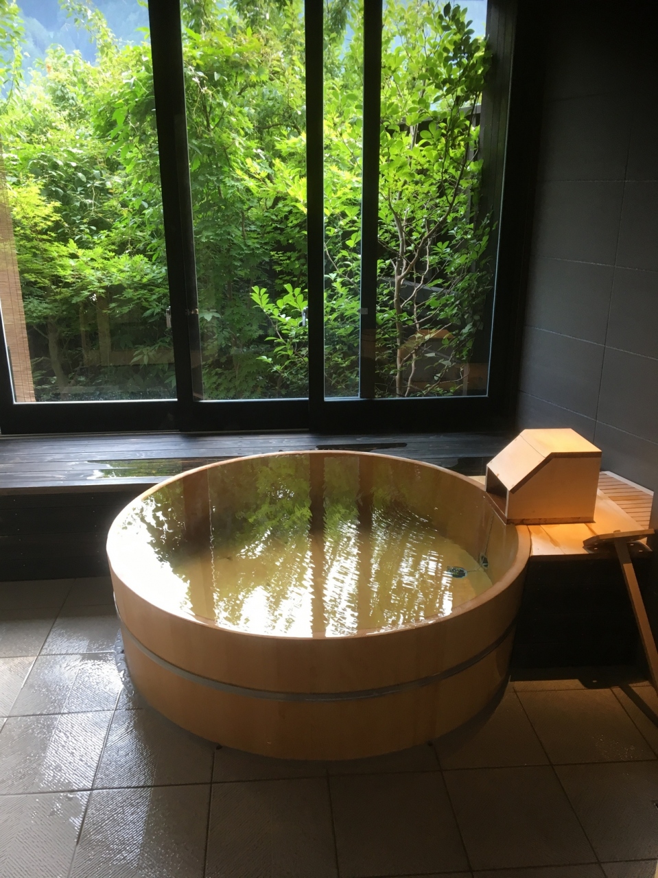 大きな畳風呂があるとPRされていて、大きく期待して、行って見ましたが、大きめの浴槽の周囲に畳がひかれていましたが、期待した風情はなかったです。カランの間隔が狭くゆっくりできませんでした。露天風呂へは狭い階段をおりますが、男風呂は岩風呂と木風呂があり、半地下で景色は今一でした。お風呂に期待し過ぎることのないように。一方で、ゆらぎの貸切風呂は清潔感があり、良かったです。大規模ホテルで、フロントも広く、どちらかというと、団体向けのホテルです。食事ももうひと工夫ほしい感じでした。