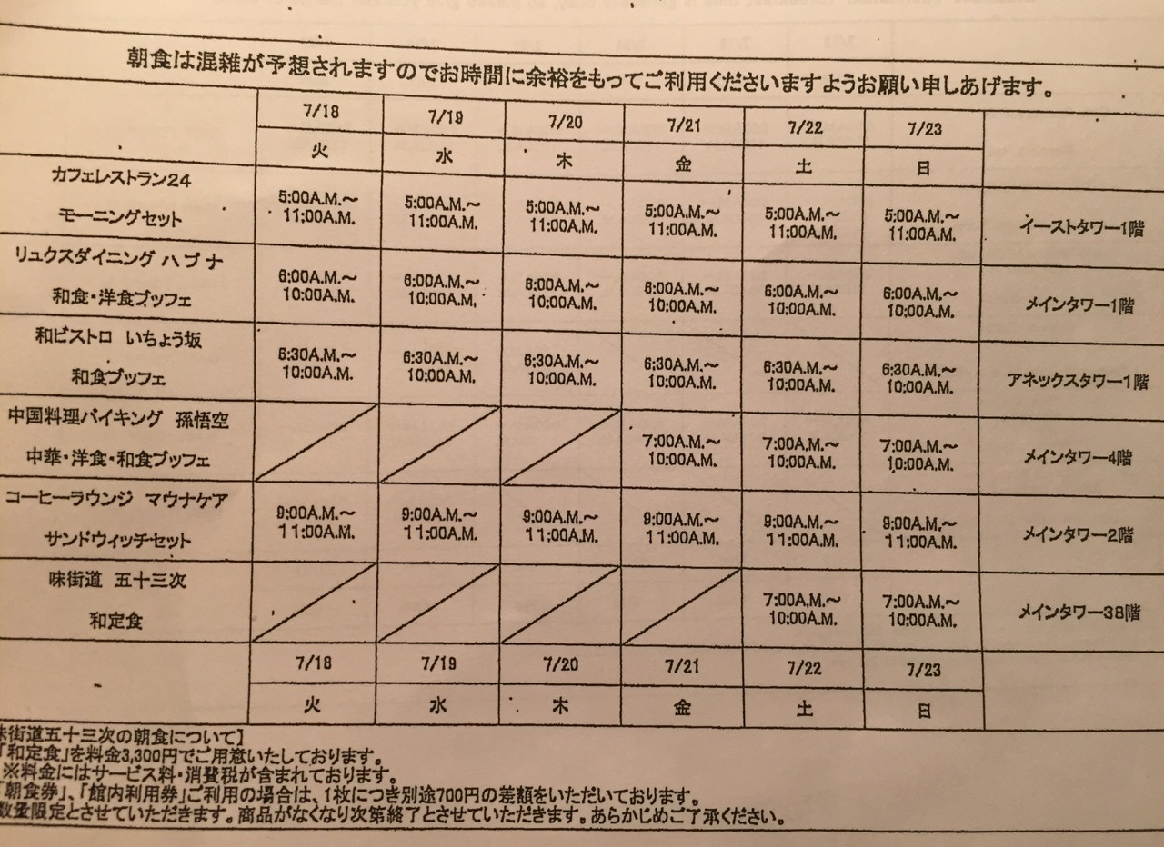 トイレは紙が流れず、部屋には前の宿泊者の体臭なのでしょうか?ワキガのような匂いがただよい、wifi は遅く、読めないような小さい字のコピーを渡され、高級シティホテルとは思えないものがありました。朝食はバイキングでしたが、朝の7時ですでに行列ができておりました。