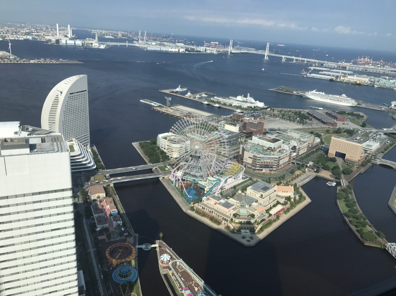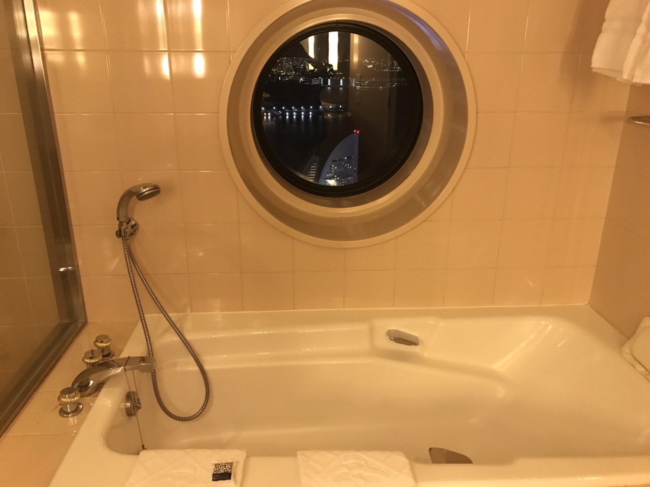 JR桜木町駅前とアクセス最高と57階のコーナーのお部屋は大変眺めが良くて最高でした。バスルームの丸い窓からベイブリッジが眺められます。ロイヤルパークに泊まる際は絶対にベイブリッジが見えるお部屋を指定するといいと思います。コーナーのお部屋は少し広めですよ
