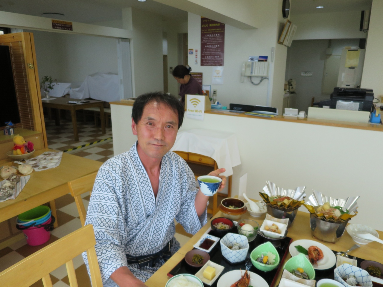 お宿は、目の前がすぐ海の所にあります。泊まった部屋は、3階でオーシャンビューの部屋(和室)です。部屋には、トイレがありますが風呂は、大浴場(時間制で男女交代)と共同の家族風呂があります。