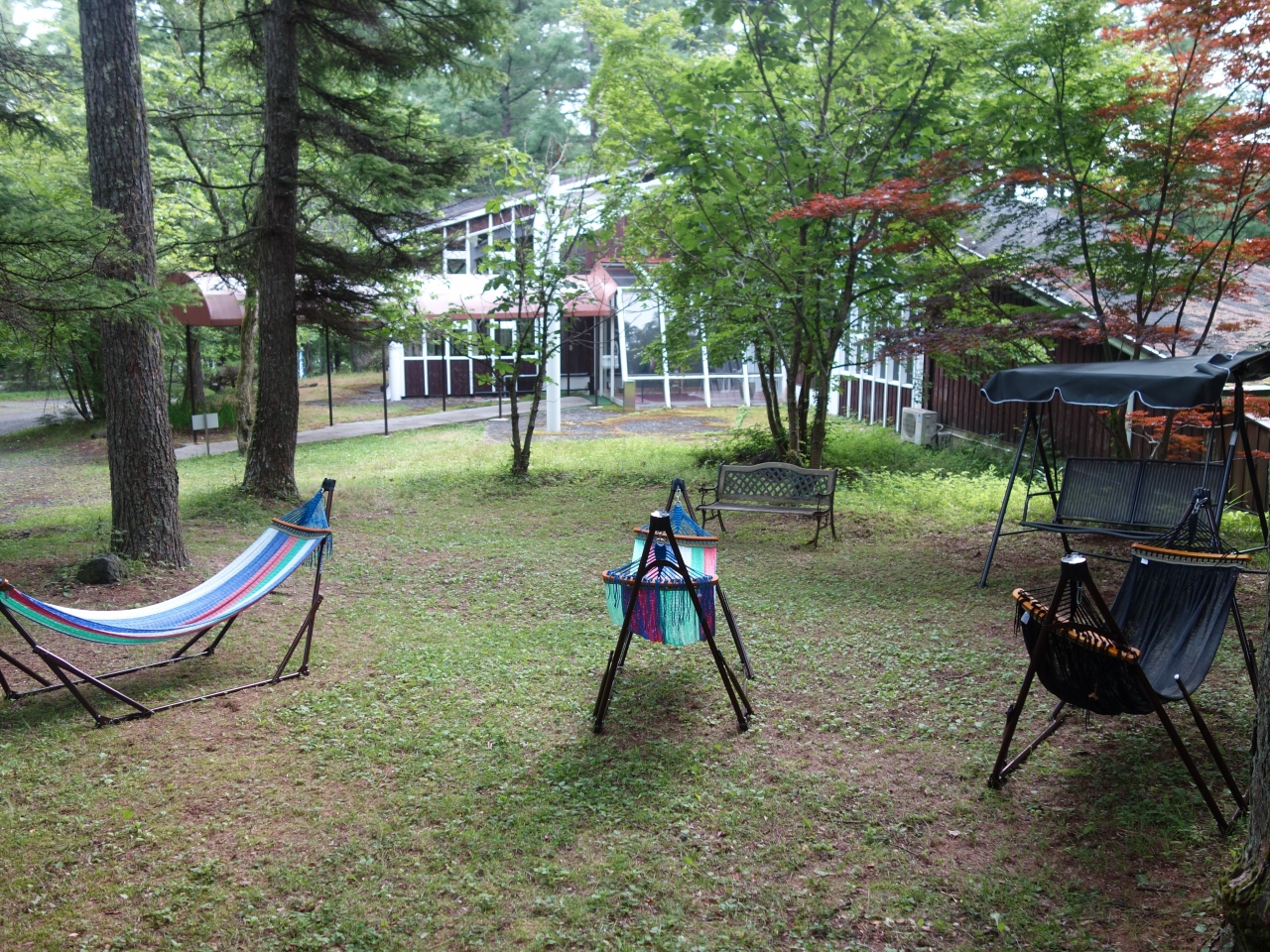 トリプルルームに宿泊しました。安い割にちゃんと部屋にバストイレもあり、必要最低限のものも揃っていて快適でした。しゃれた感じはないけど、緑に囲まれていて、前庭にはハンモックがあり気持ちが良かったです。敷地内に天婦羅屋さんがあるらしく看板はあったけど営業はしていなかった感じでした。昼間しかやってないのかな??