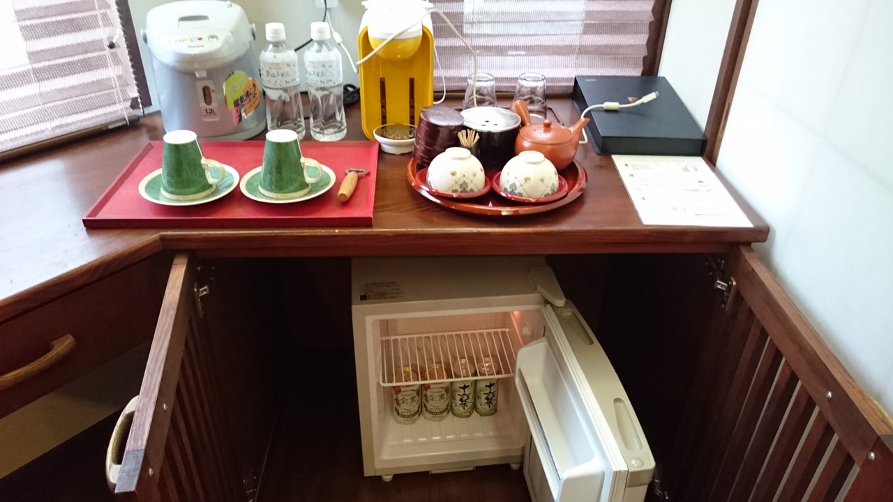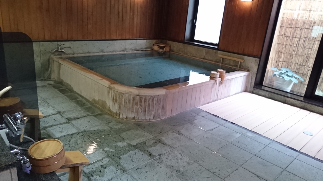 - アルカリ性単純温泉の美肌の湯。入れ替え制の大浴場、無料の貸し切り風呂があります。客室の半露天は窓外がすぐ別の旅館で窓を開けられないのが難点。