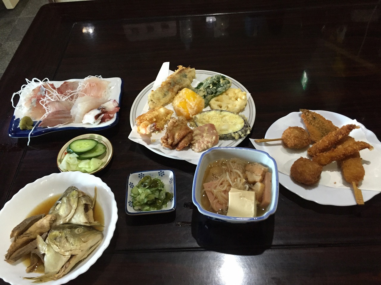 刺身・天ぷら・揚げ物・煮魚などなど食べきれないぐらい出てきました。