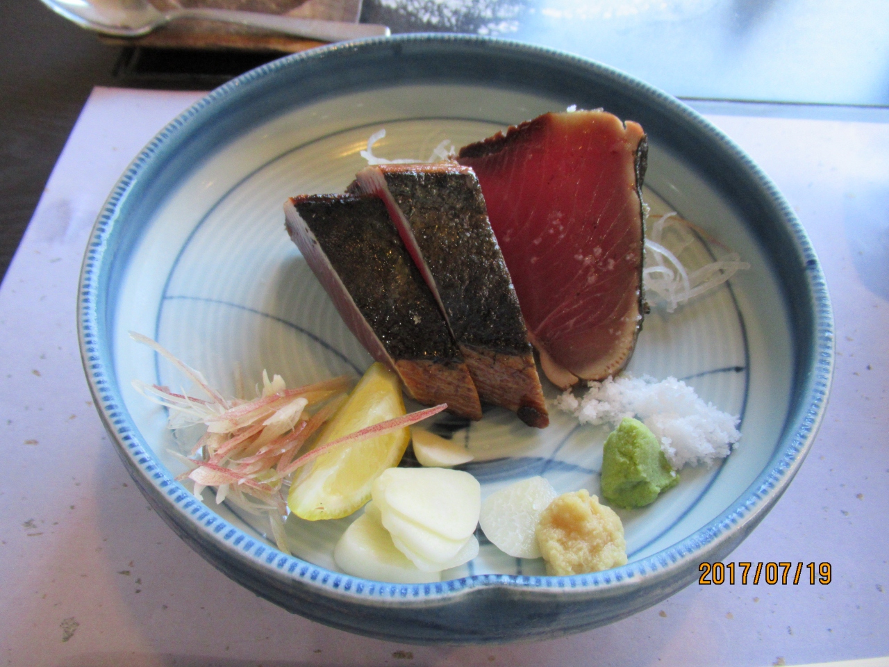 夕食に鰹のわら焼き塩タタキが出て来ましたが、鰹をポン酢などではなく