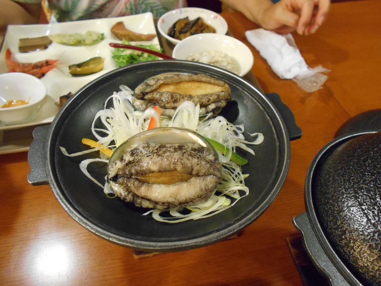 夕食はメインの一品とバイキング。アワビの踊り焼きがついたプランでしたが、2食付きで、この広さの部屋を考えるとコスパは高いと思います。