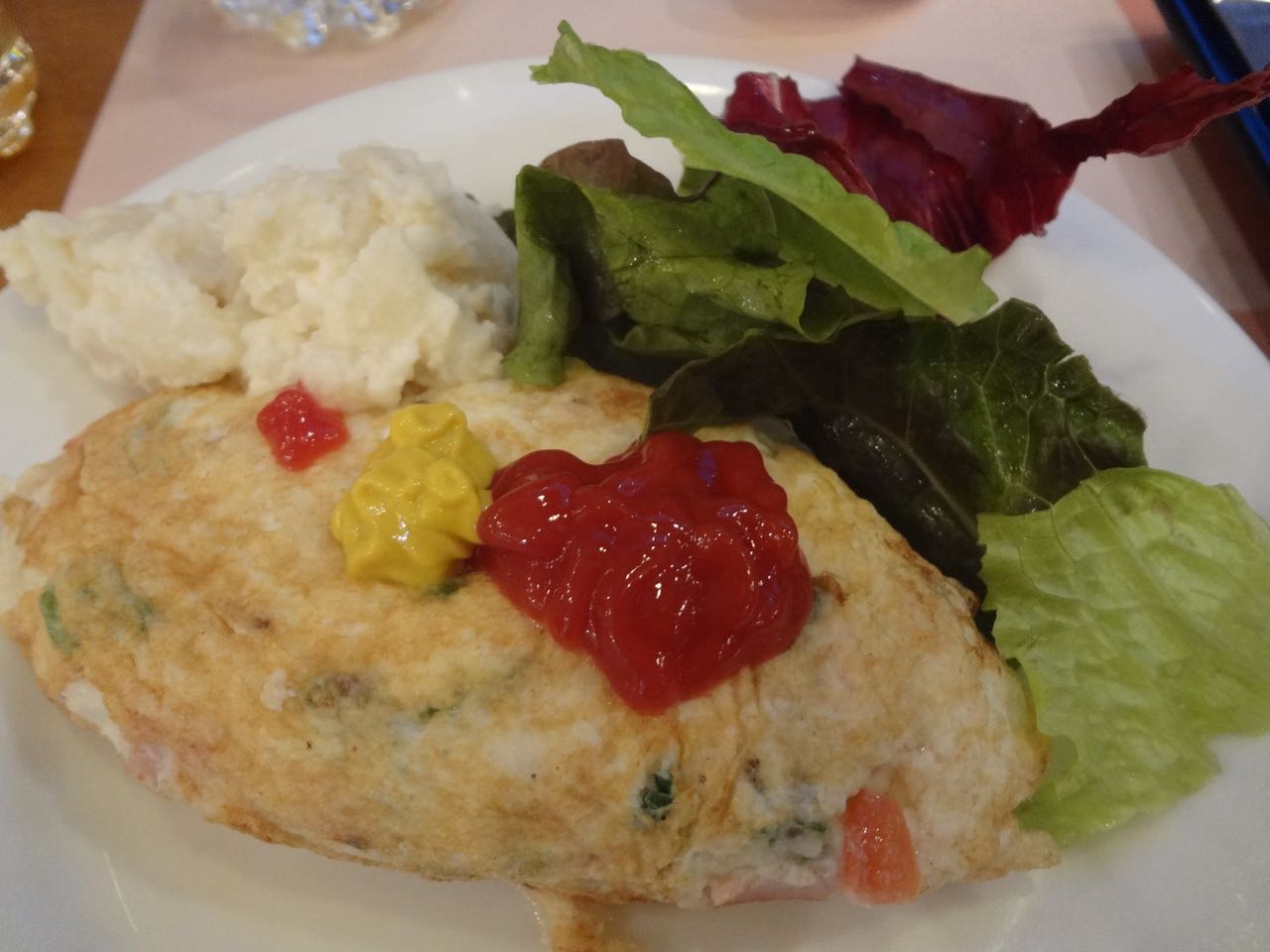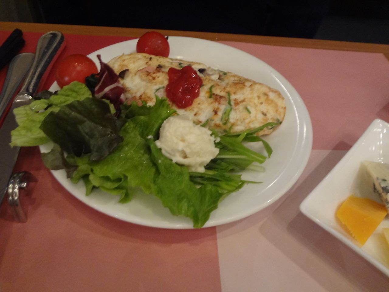 テーブルにランチョンマットを敷いてなんか外国のホテルの
