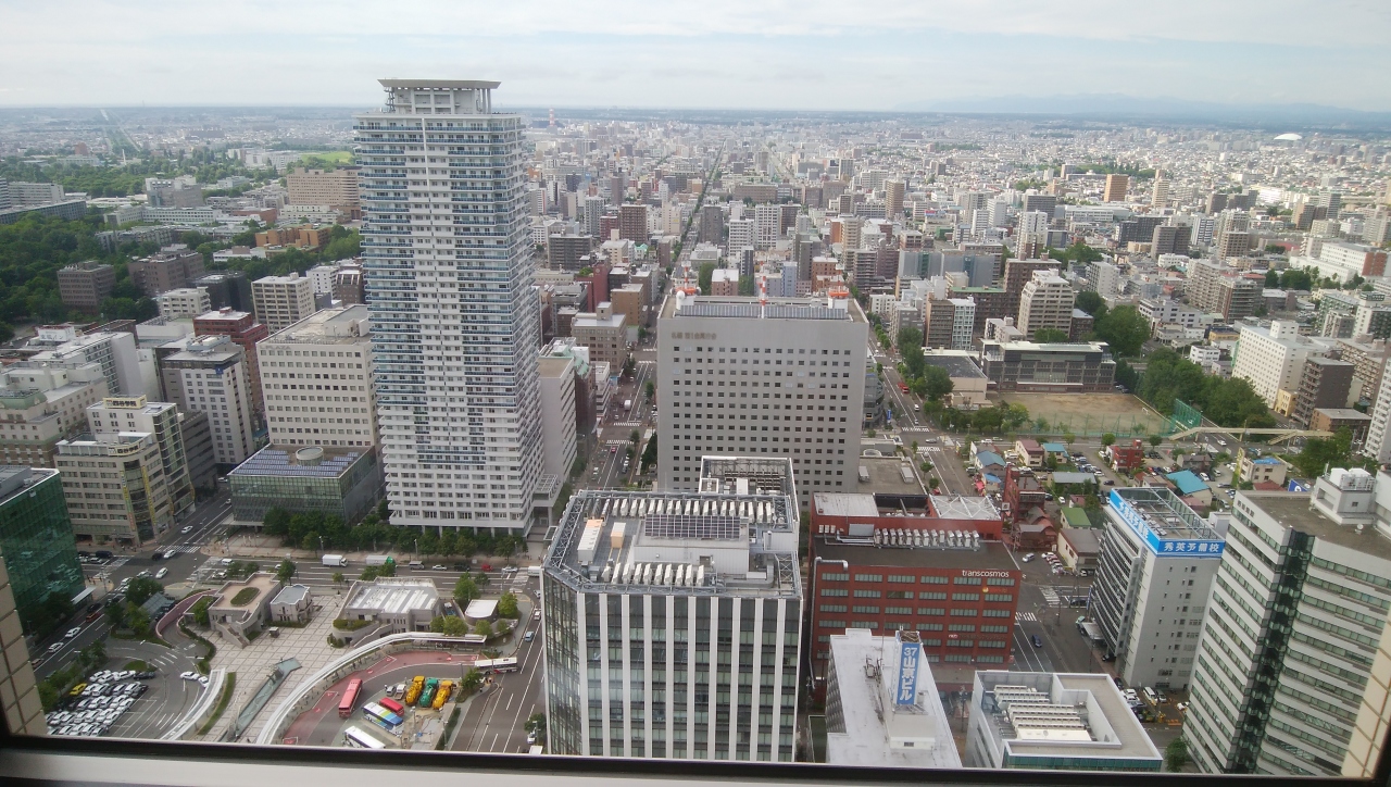 お部屋は北向き33階。窓からは北大やそのはるか先の石狩湾まで一望できました。