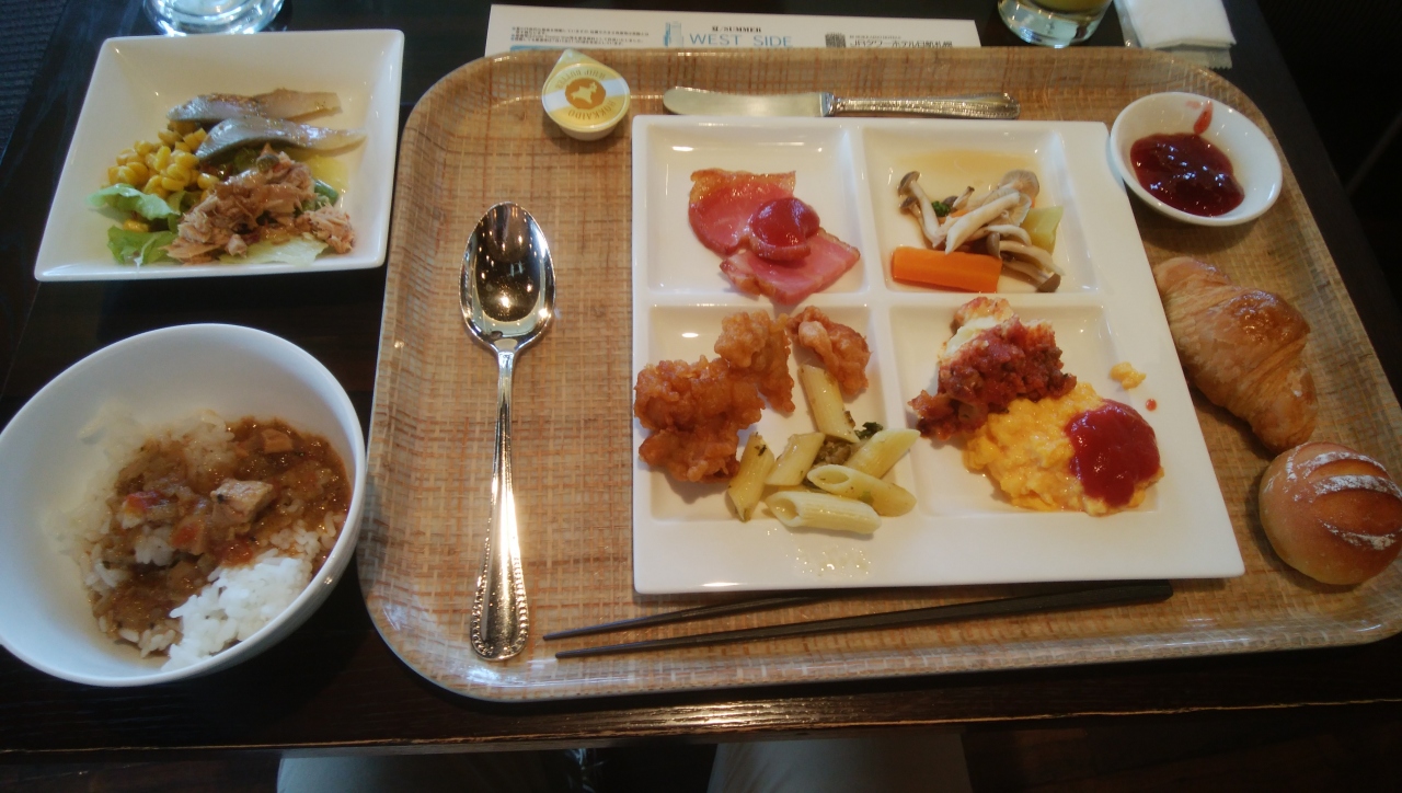 朝食は35階「SKY J」の和洋ビュッフェ。種類豊富で味は文句なし。