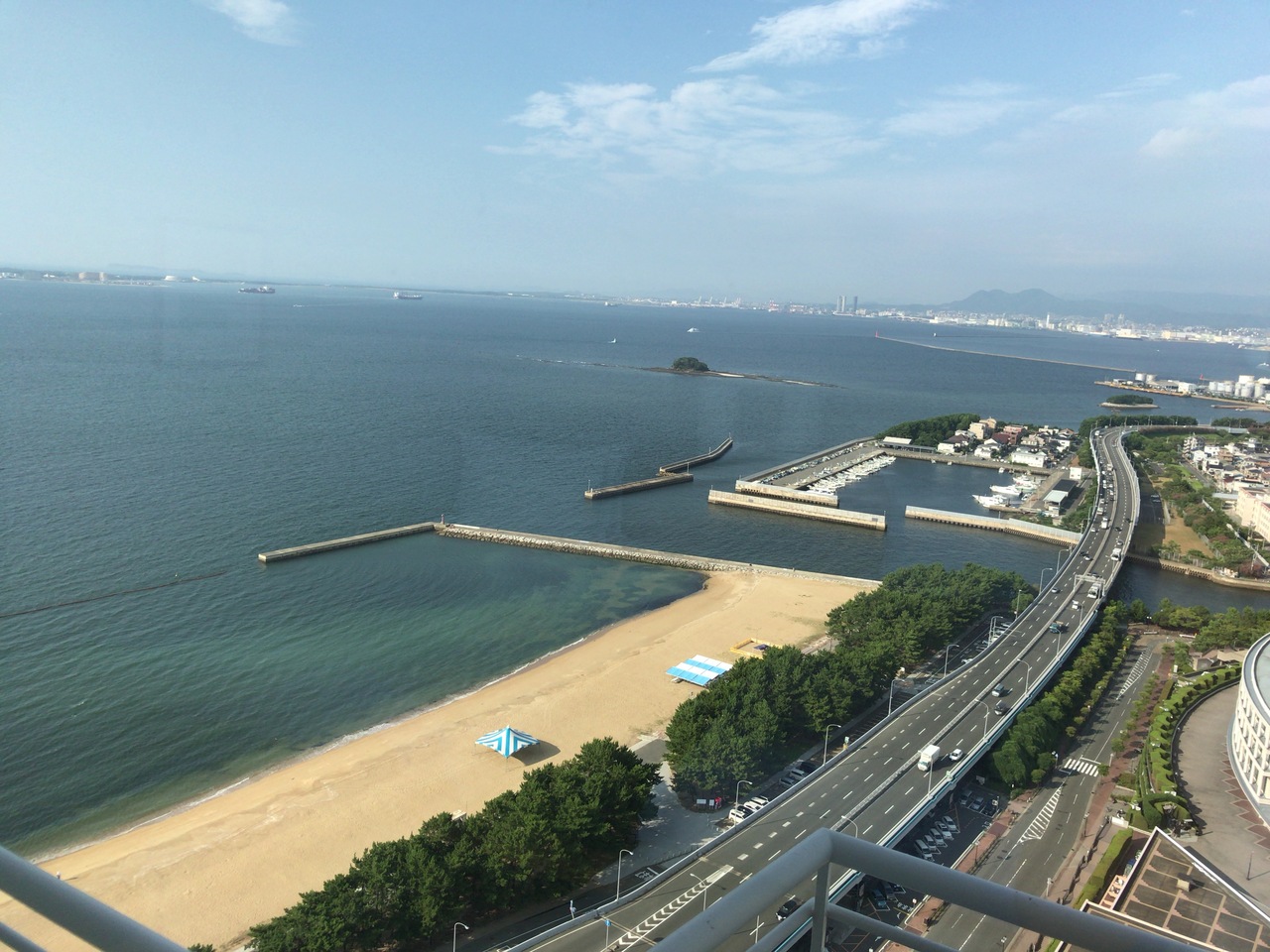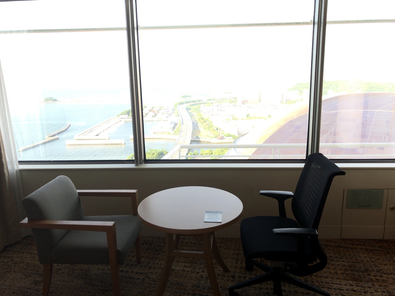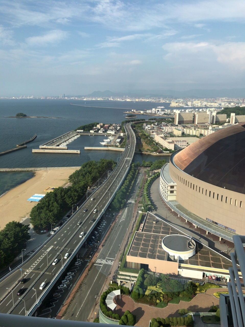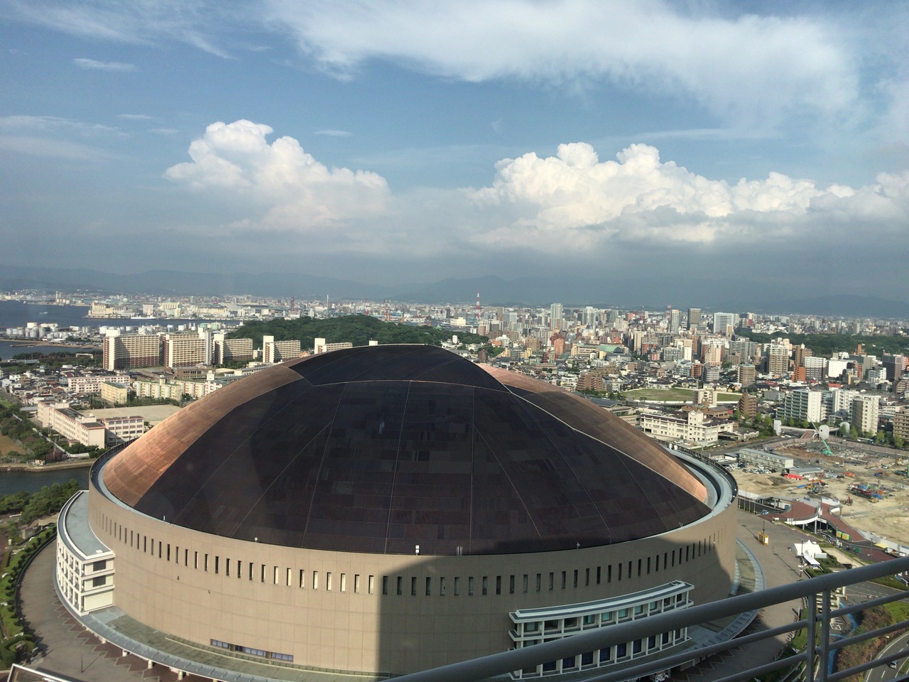 景色はヤフオク!ドームの屋根と海、夜景、着陸する航空機を眺めることができ概ね満足だが、やはりタワー側の方が夜景は楽しめる。