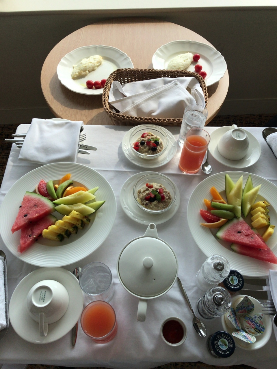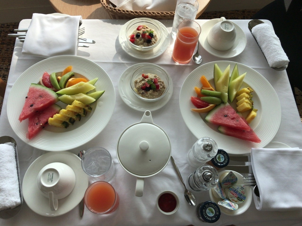 朝食のルームサービスはボリューム、質共に満足。さりげなく流行りの食材や調理法で楽しめる。