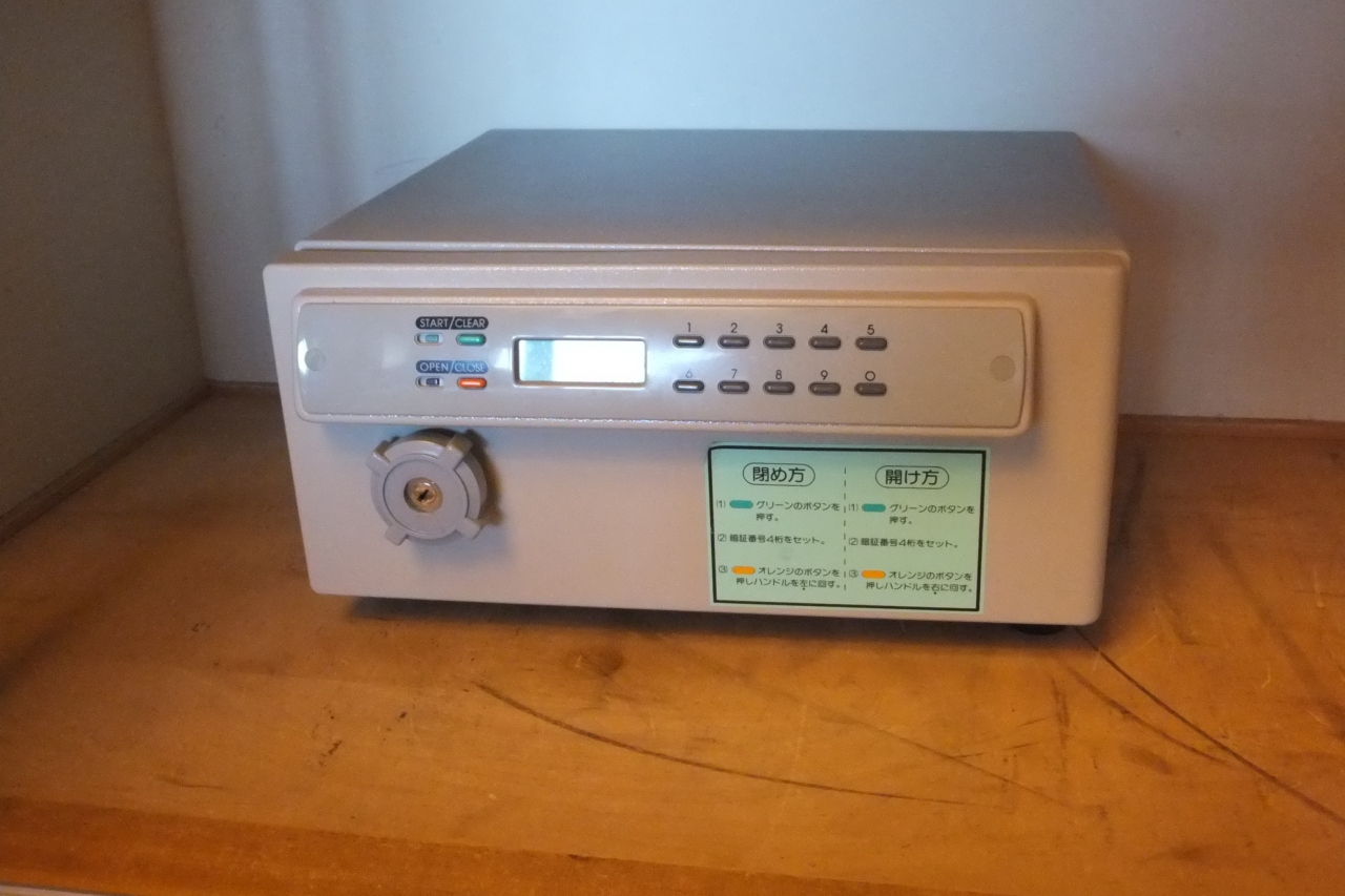 金庫は押入れの下の方にありました。標準的な暗証番号式です。