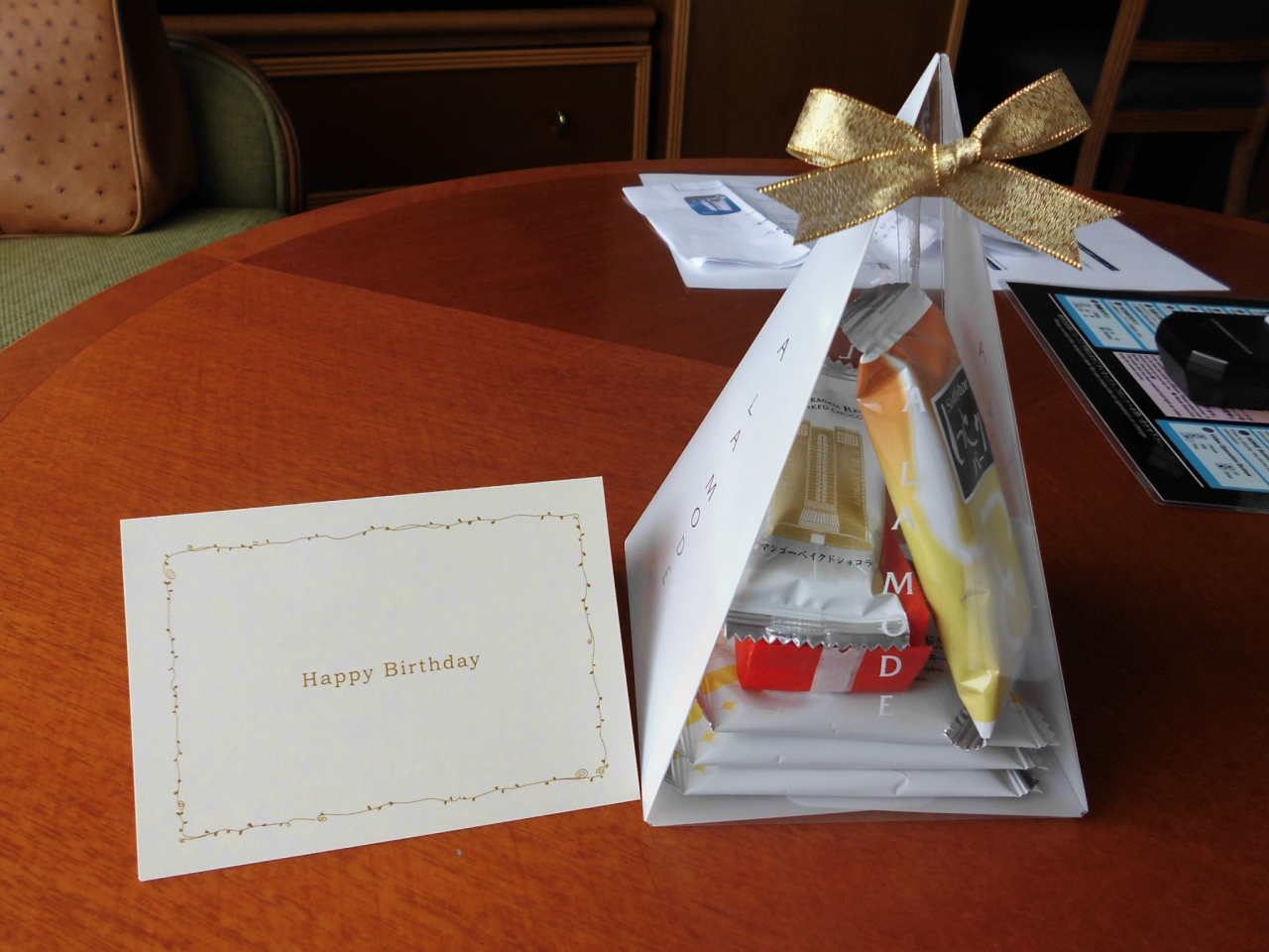 誕生日ということで室内にはクッキーのプレゼント、レストランではスタッフさんからケーキと歌のプレゼントがあり忘れられない誕生日になりました。今回は県内およびおとなり県の人たち用のプランでたくさんの特典がありました。