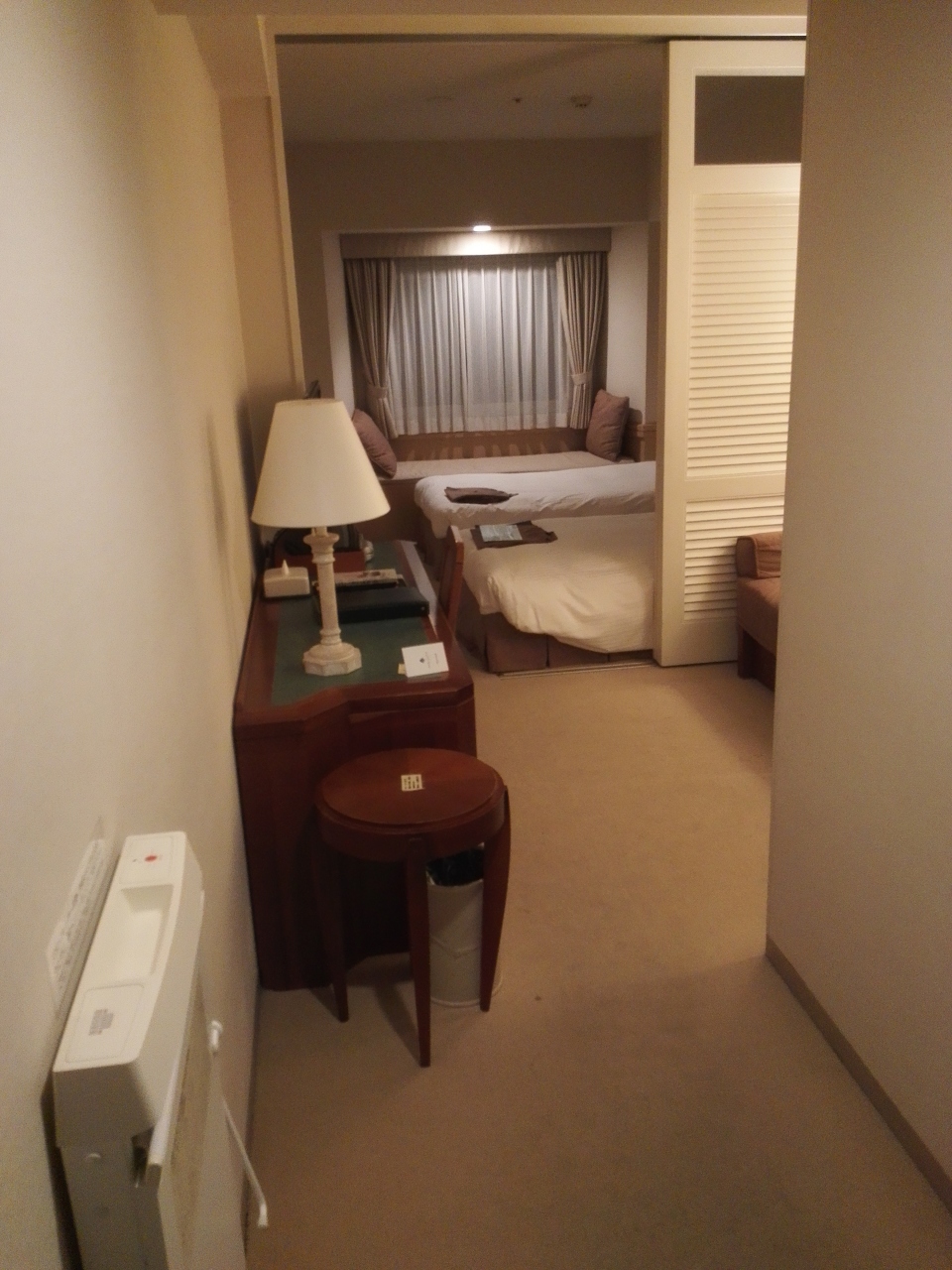 客室はスーペリアシングルと言う話だったが、通されたのは2ベッドにリビングスペースのある広大な客室。