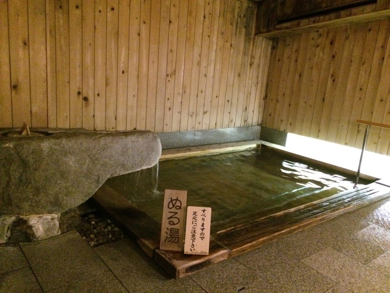 大きなお風呂と、露天風呂、ゆる湯の3種類あり、道後温泉本館と泉質は一緒だと思われます。こんこんと涌いている贅沢な風呂を独り占めでした。すべすべになります。