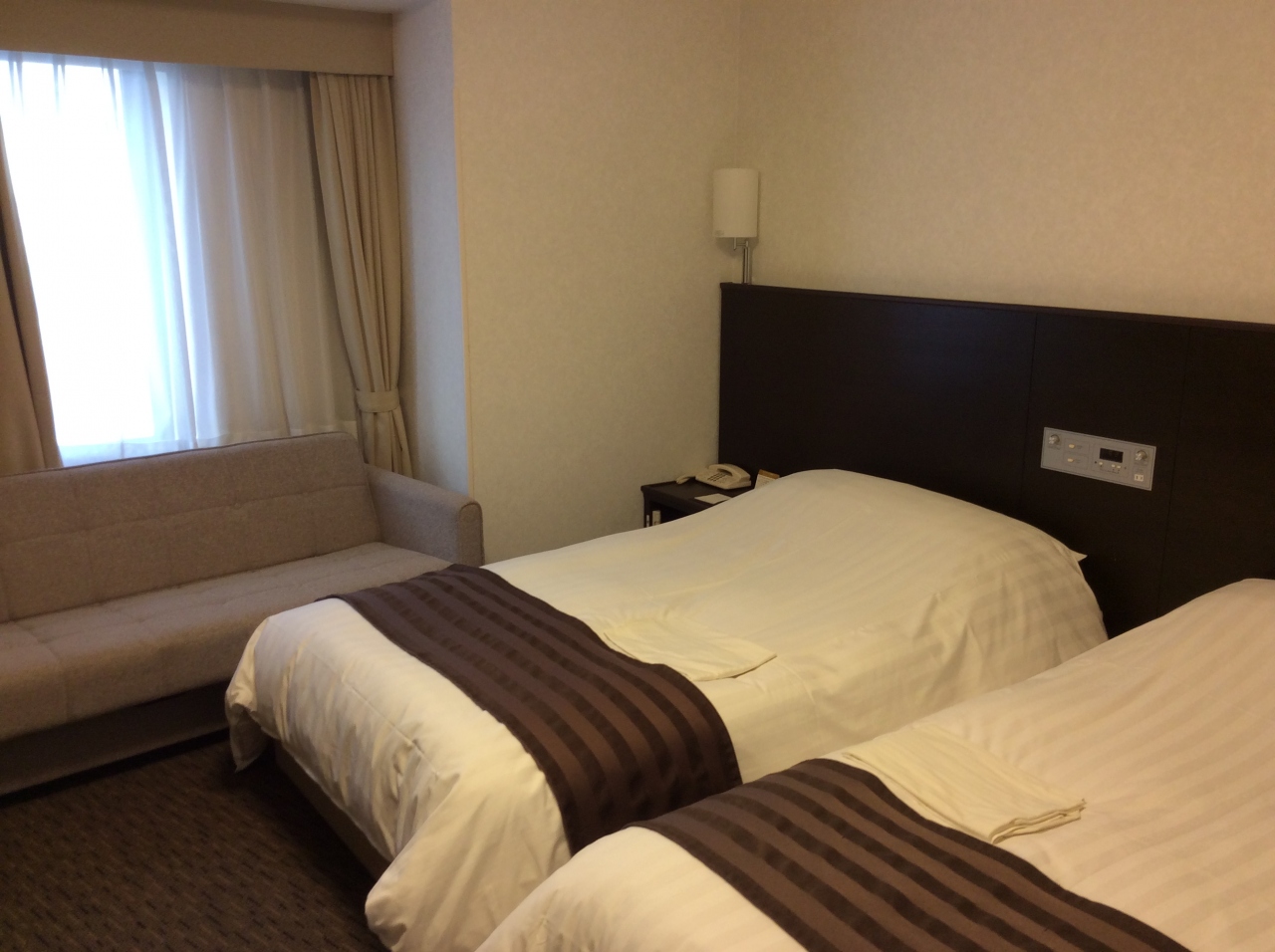 大阪であったイベントのために利用しました。るるぶトラベルでおまかせ部屋プランにしたのですが、1人利用にもかかわらずツインの部屋になってラッキーでした。大阪は暑かったので、2本の無料のミネラルウォーターは助かりました。大阪駅から地下でたどりつけるので便利です。近くに飲食店が多くあるので、朝食はつけませんでした。部屋のWiFiの出力が弱く、机の上でないとまともにWebにつながらなかったのだけが残念でした。