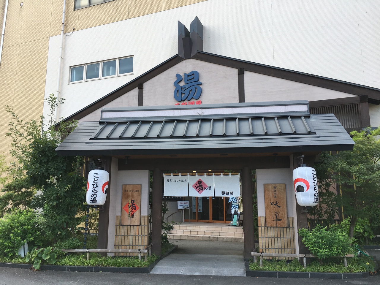 金比羅さんへお参りした後、汗だくになったので温泉へ。