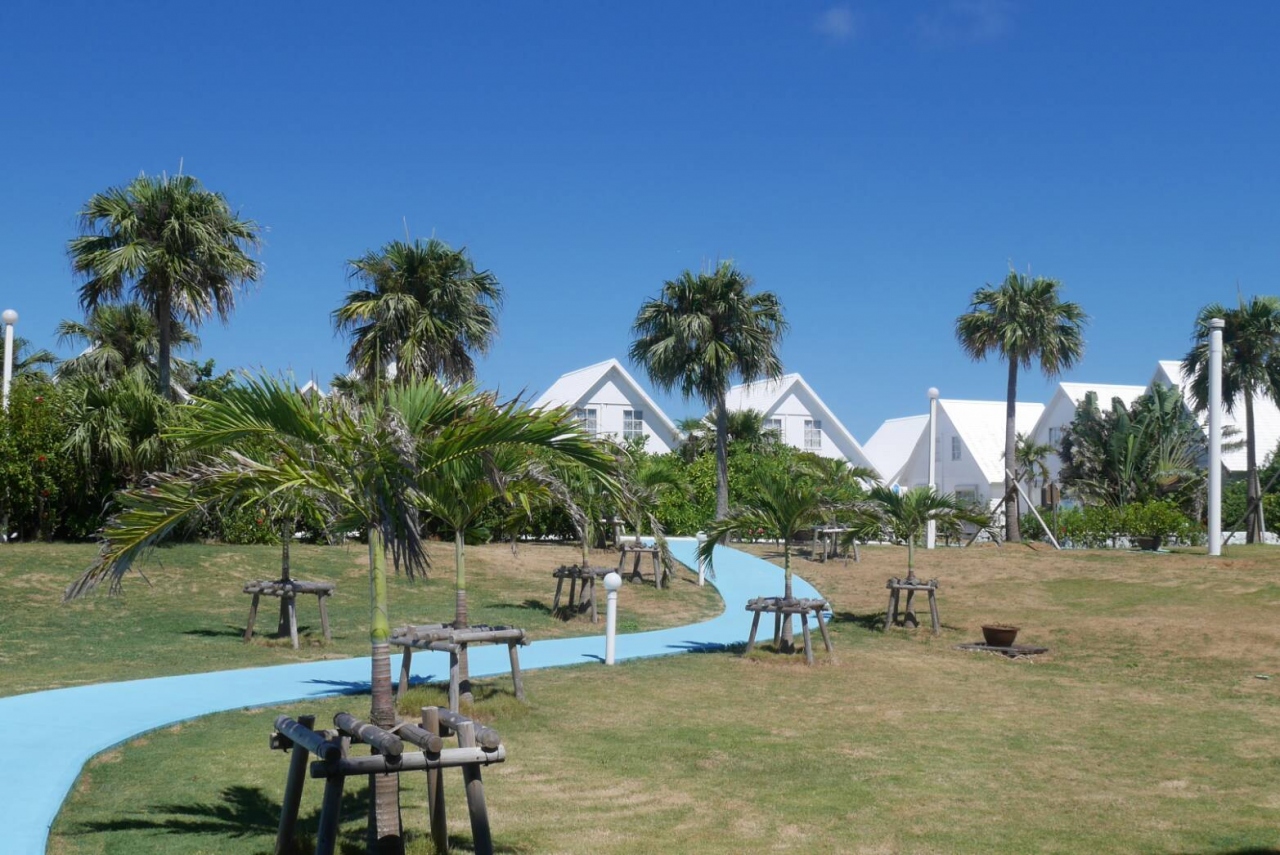 初めての与論島への訪問で、2泊3日で滞在しました。施設全体が白と青を基調としたデザインで、地中海のリゾートに来たような素敵な雰囲気でした。今回は友人ふたりで宿泊しましたが、カップルや家族連れがほとんどでした。お部屋は、2階のツインルームでしたが、ソファも大きく十分すぎるくらい広くて、気分もとてもゆっくりできました。ホテルのすぐ前の海もとてもきれいで、マリンスポーツも充実していました。海から歩いてすぐ部屋に戻れるので、ファミリーが多い理由も納得です。外に食事や観光をしにいくにはレンタカーやタクシーが必須ですが、リゾート内でも十分完結できると思います。飛行機の時間にあわせて空港にバスで送迎していただけるのがとても有り難かったです。施設内は自然豊かで、スタッフの方も親切で、都会の喧騒を忘れてゆったり島時間を満喫できました。