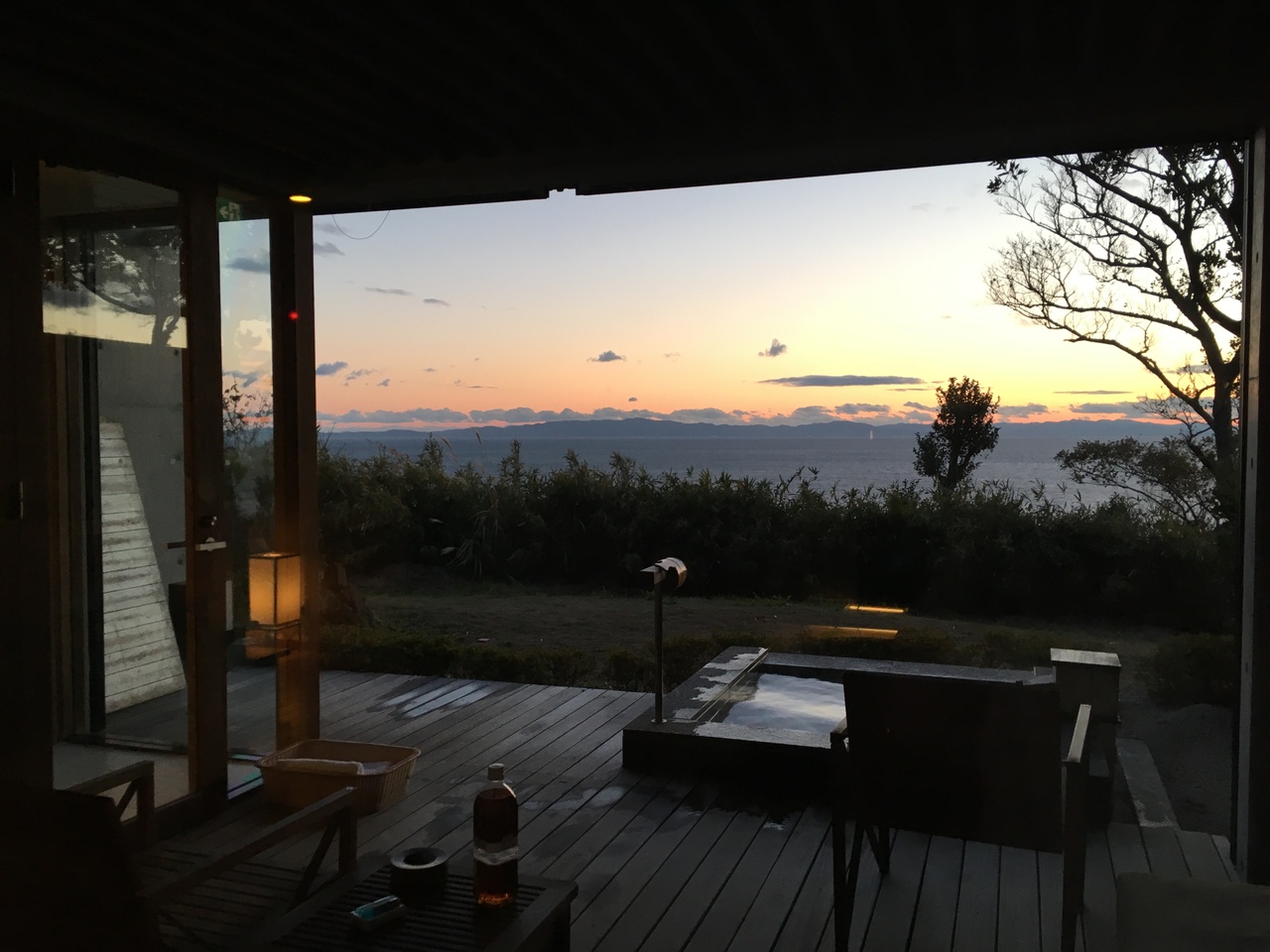 子供は宿泊できない、大人の隠れ家的お宿でした。南知多は初めて行きましたが、ほんとにこの上にあるの?ってゆう山道をすこし登って行くと、ぽつんと看板があり、そこを入って行くとつきあたりにあります。妊娠5ヶ月での旅行でしたので、食事所を入り口から近い場所にしてくれたり、ご配慮いただきました。マイナス0.5の部分は、食事がいろいろこだわってて素晴らしいのですが、どちらかというとお肉どーん!っていう豪快な料理が好きな夫にとっては物足りなかったかな?っていうところです。。客室はとても清潔で、気持ちいいです。また、客室露天風呂が最高で、目の前の海、空、ほんとに開放的でした。広さも大人2人が入れるので、夫と一緒にのんびりできました。また、喫煙者の夫にとっては、露天風呂のあるベランダでタバコを吸えたので、夜は月や対岸の光を見ながら、、、至福の時間のようでした。親を連れて来てあげたい、また行きたい、と思えるお宿です。