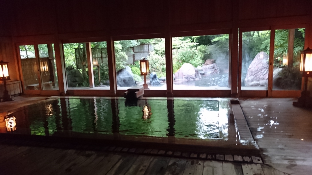 とても素敵な露天風呂。温泉の滝があって、それにつかると最高です。