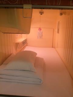 1度は体験してみたかったカプセルホテル。温泉も夜中以外は、ほぼ自由に入れる。
