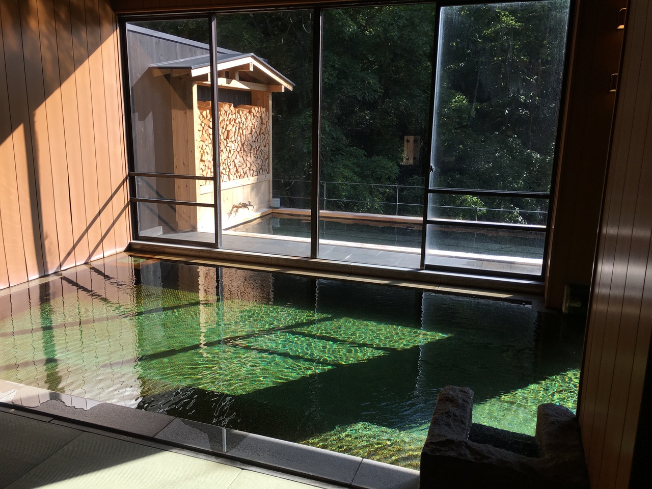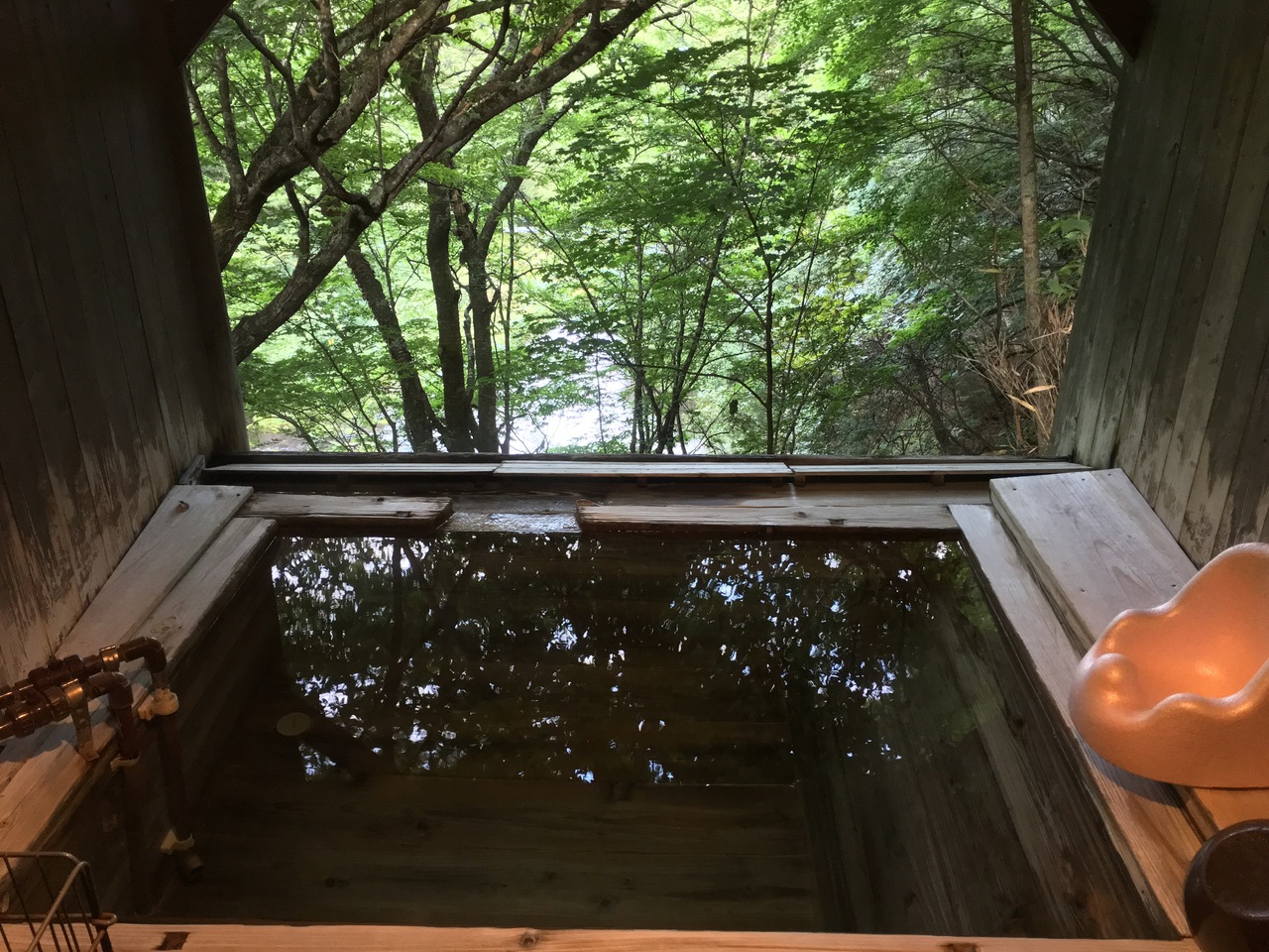 浴室は大浴場と大浴場併設の露天風呂、3つの貸切風呂、階段を降りた先に有る渓流沿いの露天風呂が有ります。大浴場の床は畳敷きになっていて、滑りにくく歩きやすかったです。又今年新たに作られたという併設の露天風呂は、新しい木の香りがして、直ぐ傍を流れる渓流を見ながら、ゆっくりと湯に浸かる事が出来ますし、宿泊翌日の朝一番で予約を入れた貸切風呂も同じように、緑深い中で真下を流れる渓流を見ながらゆっくり過ごせました。残念だったのは、朝夕で大浴場の男女入れ替えが無かった事くらいで、それ以外は特に不満は有りません。
