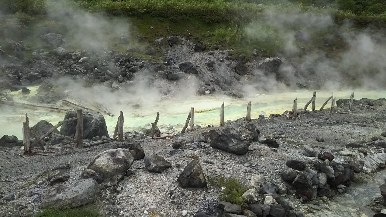 硫黄で黄色く染まる可能性もあるので、捨ててもいいような服で屋外の岩盤浴は楽しむのがいいと思います。