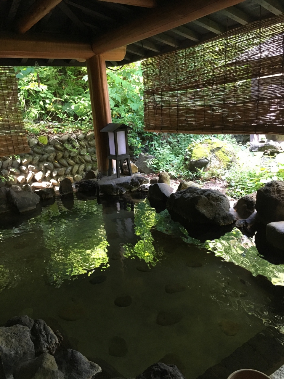 平日に日帰り入浴で訪問。10:30-から利用可能です。露天風呂に直行。屋根があるので、日陰で涼みながらゆっくりお風呂を楽しめました。お湯も適温で、独り占めできました。