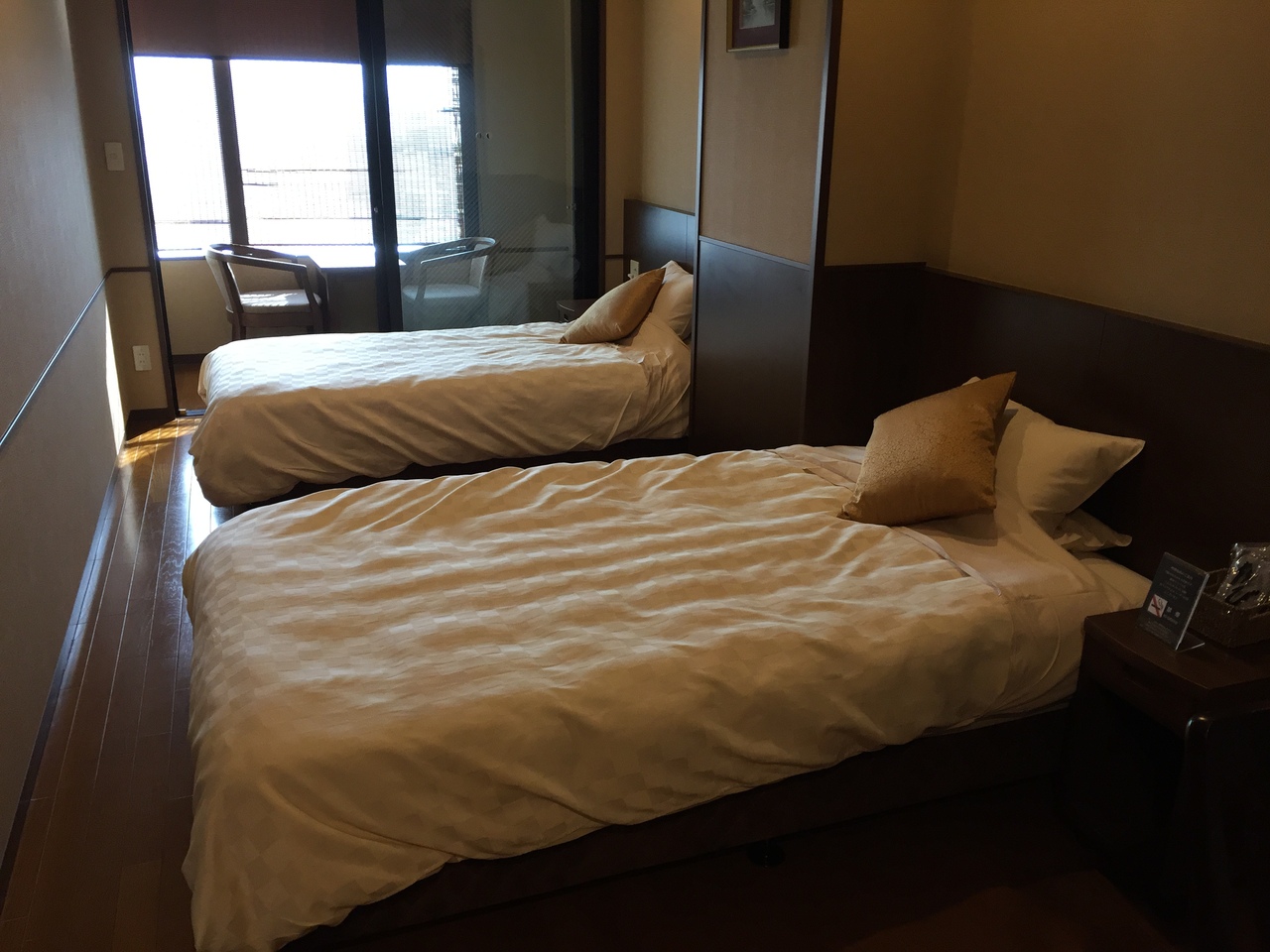 神戸駅から地下で濡れずに5分くらいで到着です!受付をして15時チェックインまでもお風呂や岩盤浴とかは利用できるので先に楽しんでおき、15時過ぎてからチェックインをしてホテルの客室に入室できます。部屋のフロアには給茶機があり、ほうじ茶緑茶お水が飲み放題です。