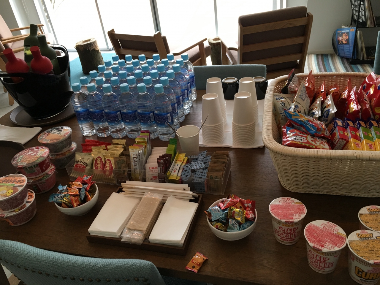 多目的スペースFREE BIRDには、お菓子やカップ麺がいろいろ置いてあり、いただくことができました。