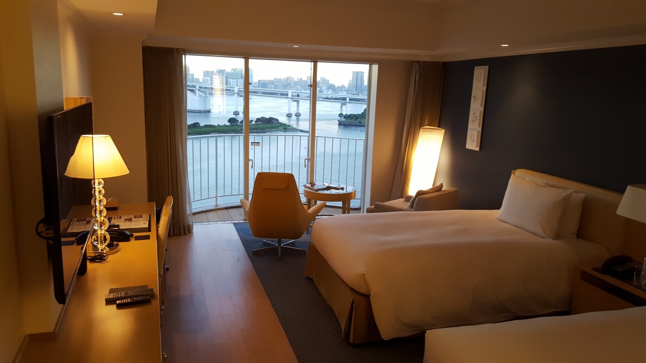1泊1万8千円ちょいとで宿泊。ヒルトンダイヤで最安値部屋から一気にプレミアムツインのお部屋にアップグレード。バルコニー付きの眺めの良い部屋で大満足。夕焼けともに素晴らしかった。また部屋数が全体的に少なめなせいか、ラウンジも比較的空いており、サービスが行き届いているような気がしました。はっきり言ってヒルトン新宿よりよっぽど安いし、いいと思う。