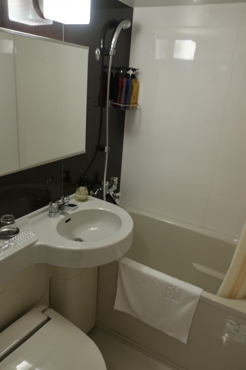 部屋は少し狭いですが、とても清潔で、窓からの眺めも良いです(何もないですが開けている)。そして嬉しいのがスカイスパ。この手のホテルは部屋のユニットバスしかない所が多いですが最上階に露天のある大浴場があり、足を伸ばして入れるのがとても良いです。