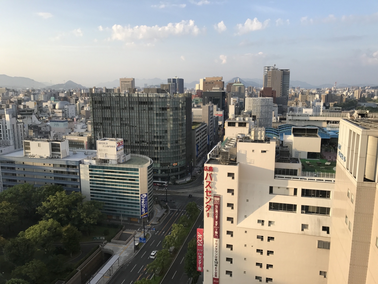 広島のランドマークともいえる高層ホテル。街の中心街にあり、JR広島駅からはそこそこ離れているが、隣がバスセンター、アストラムラインの県庁前に直結しているので交通の便はいい。