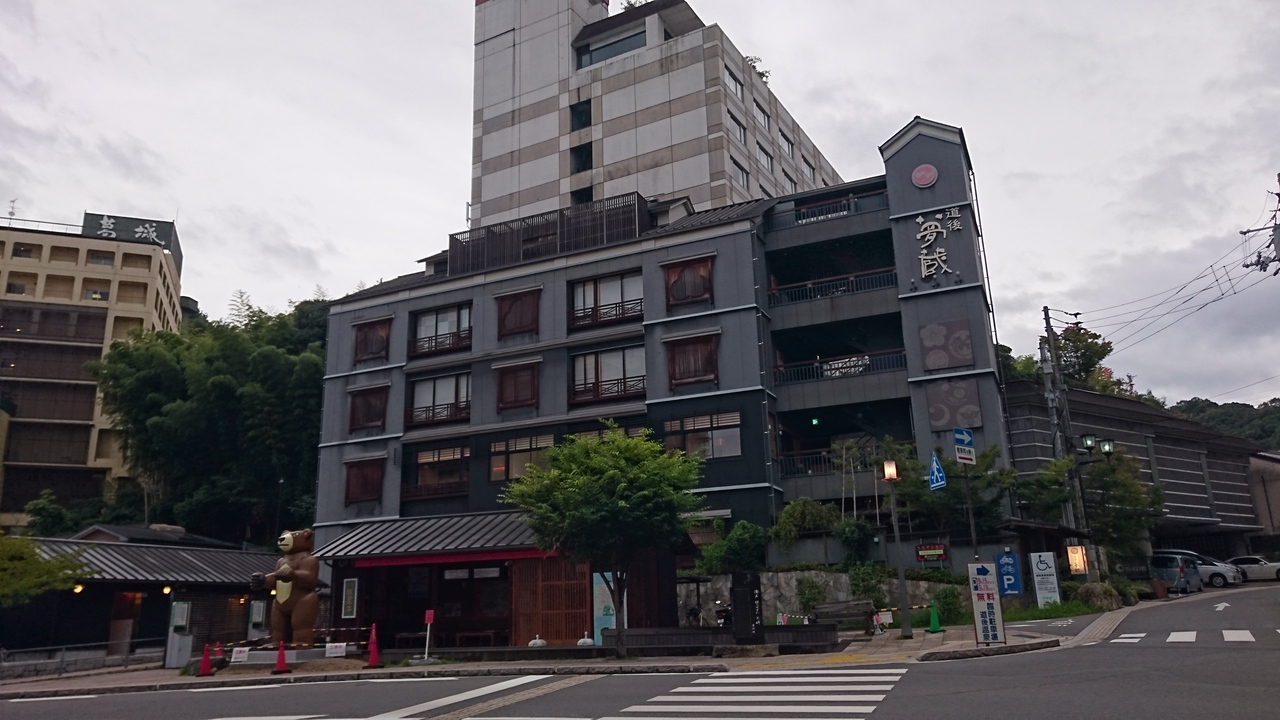 道後温泉本館の裏手ですが、客室から、また備え付けの砥部焼きの温泉風呂からも目の前に道後温泉本館が見える、ロケーションが抜群の宿です。宿泊料金は一人30000円以上と決して安くはありませんが、料金以上の満足感の味わえる宿かと思います。個室食事処で頂くお食事も料理長の創意工夫が施されておいしく、朝食もボリューム、味とも満足でした。