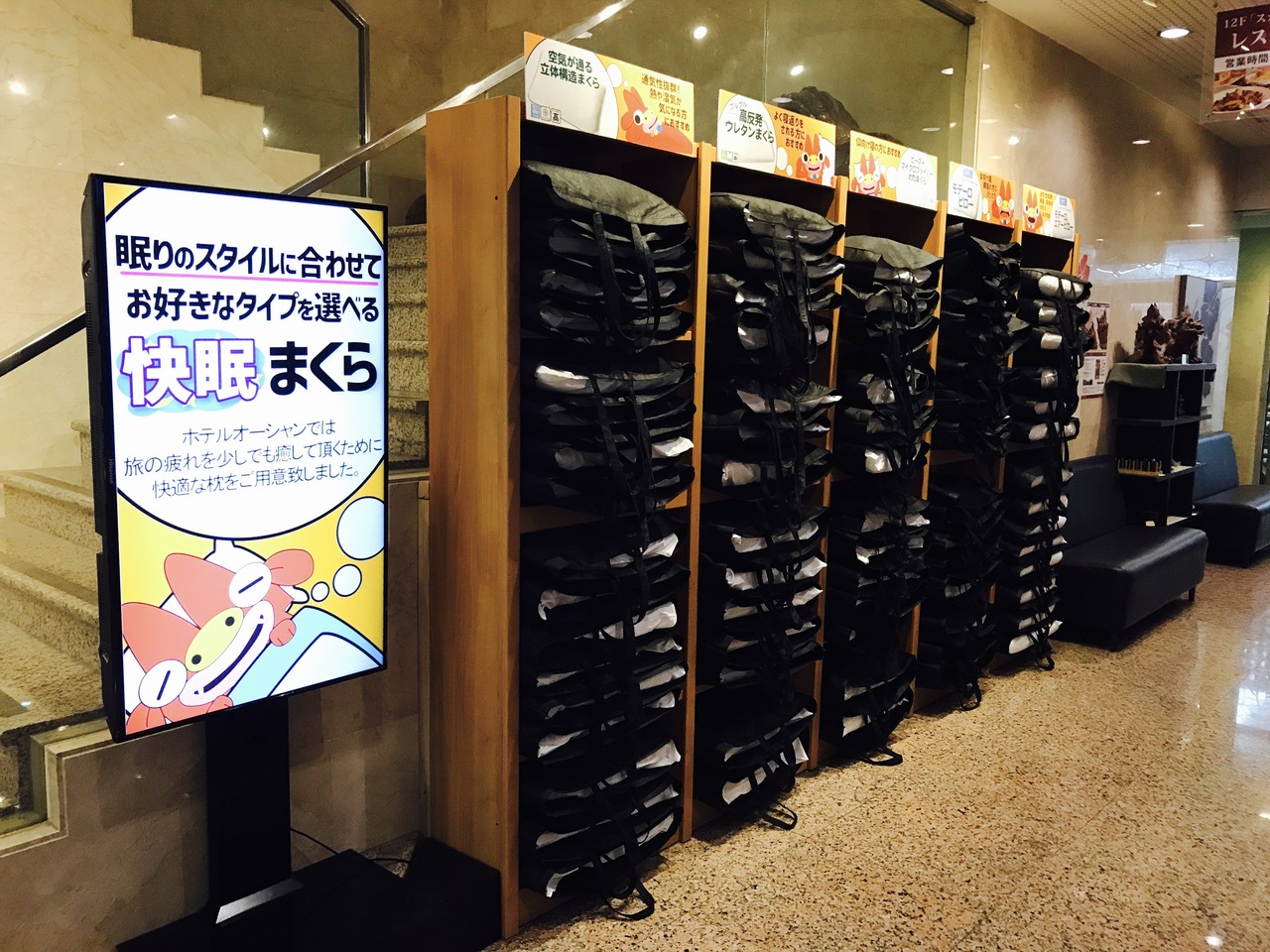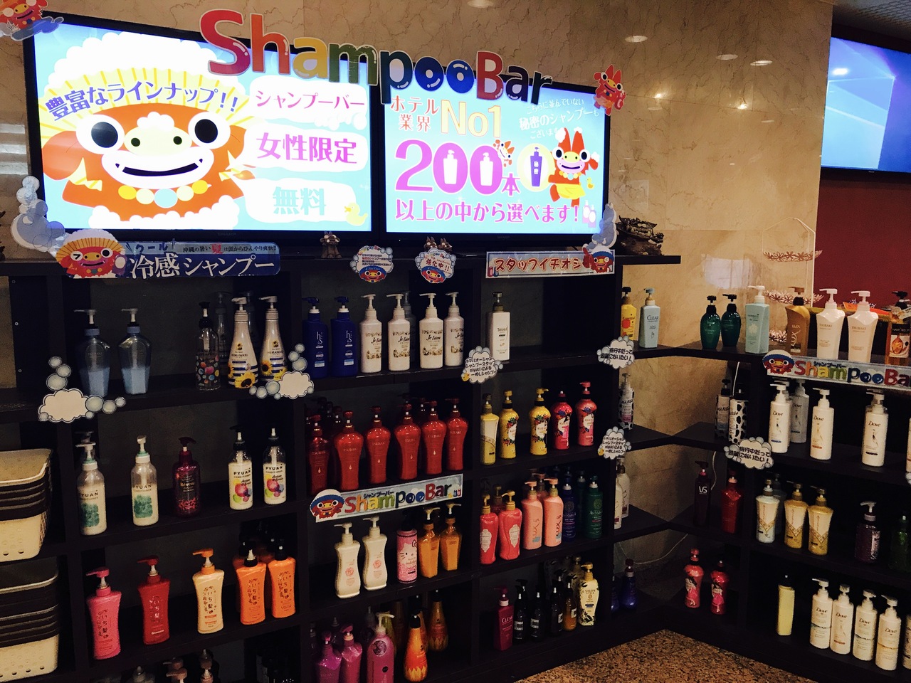 1階ロビーには選べるまくらや女性限定ですが、選べるさまざまな種類のシャンプーがありました。