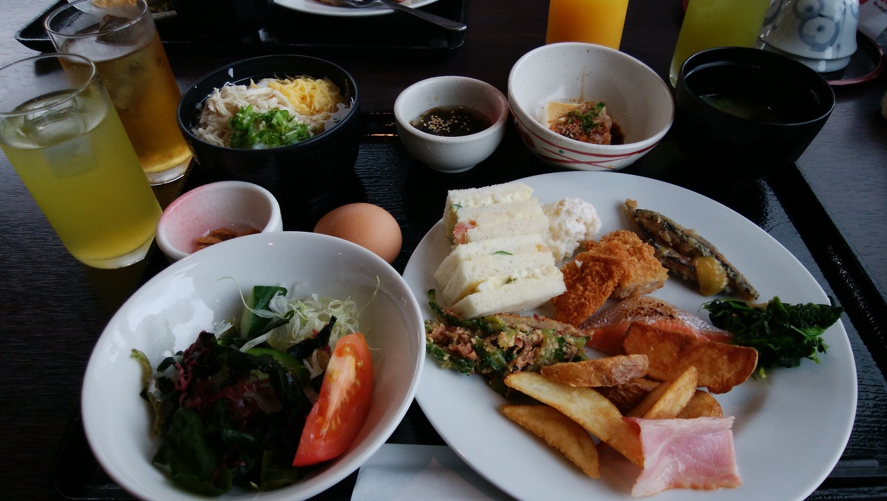 朝食バイキング(本館2階)は690円で、奄美の郷土料理の鶏飯をはじめ、充実した内容でした。おいしかったです。
