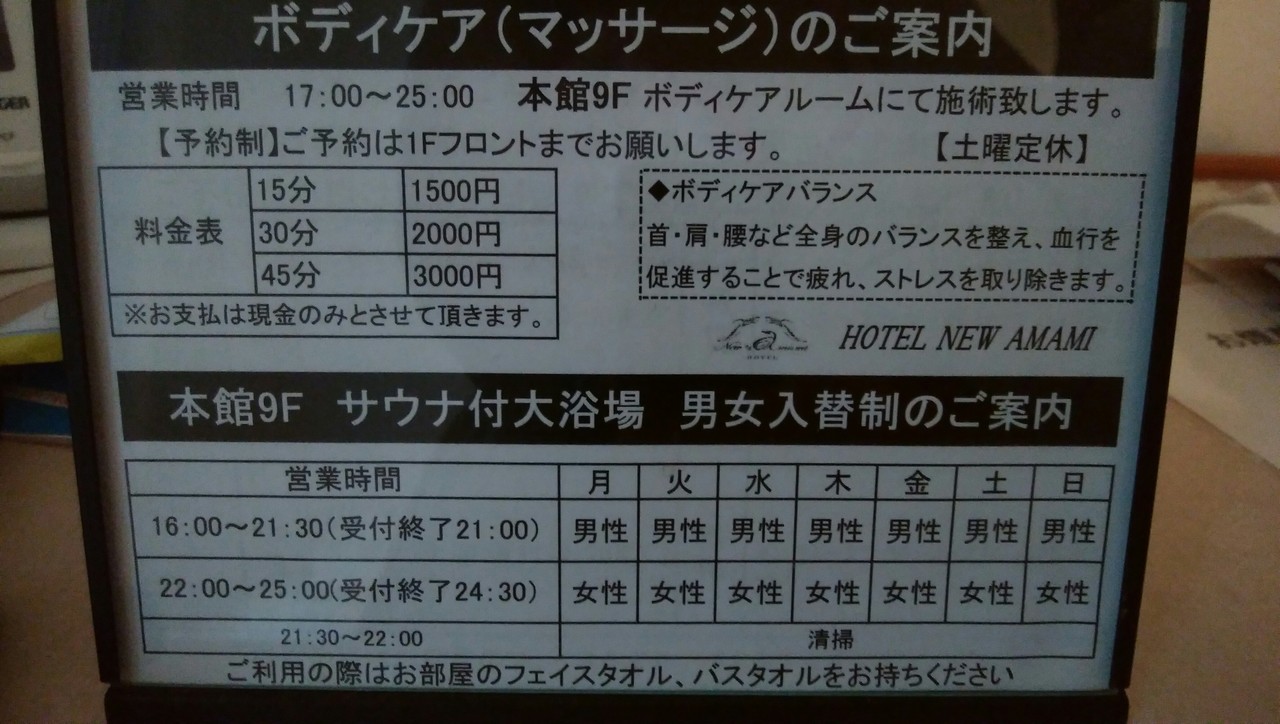 - 大浴場あり。男女入れ替え制でない方がいい。