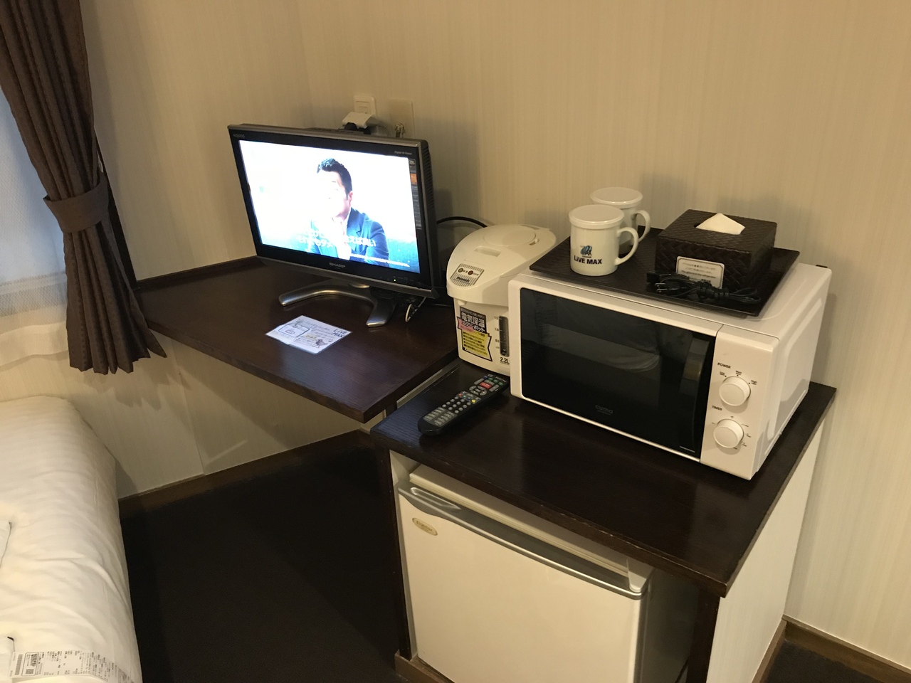 ホテルの建物はやや古いのですが、室内は清潔な感じでした。wifiあり。室内には冷蔵庫や電子レンジがあります。地下1階には洗濯機と乾燥機がありました。