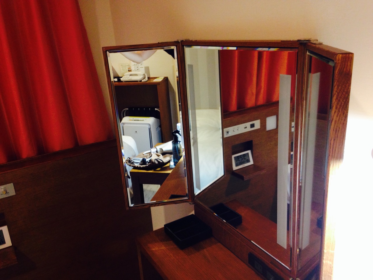 三面鏡は、今まで等身大鏡やバスルームで立ちながら乾かしてたダルさから開放されるので、かなり良いと感じました。