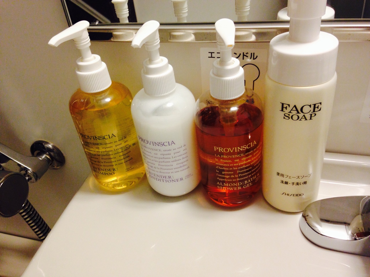 アメニティの多さにびっくり。特にヘアケアのプロバンシアは家でも使いたいくらいいい仕上がりに。