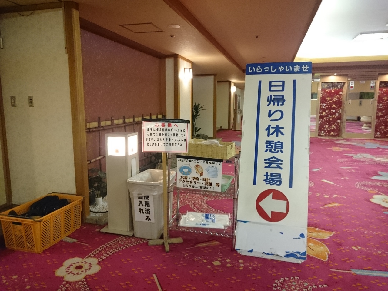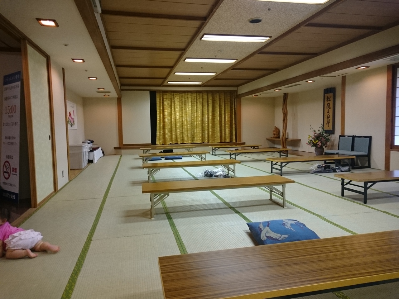 ロビーで料金を支払ってから、大広間に荷物を置きに行きます。