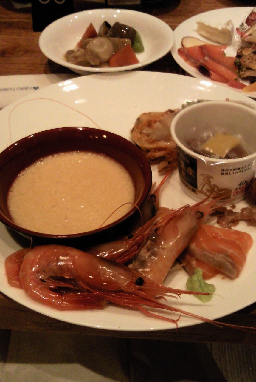 朝食はとても立派な甘エビや郷土料理の治部煮、